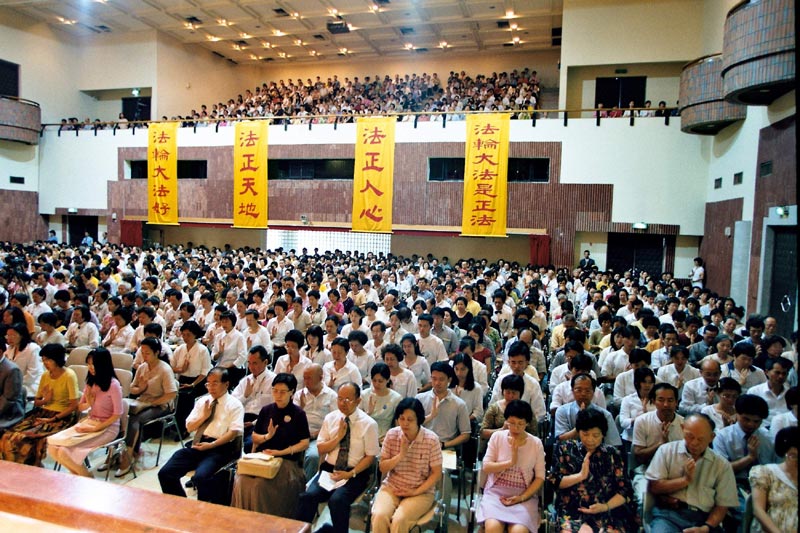 五点五十分,在主持人的带领下,全体大法弟子再度一起朗读《正念正行》:「大觉不畏苦 意志金刚铸 生死无执著 坦荡正法路」五点五十五分,全场肃静,弟子们带着救度众生的慈悲,集体发出最纯正无漏、坚定不破的正念,圆满结束了台湾北区修炼心得交流会。