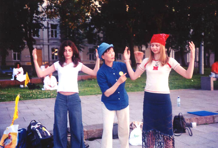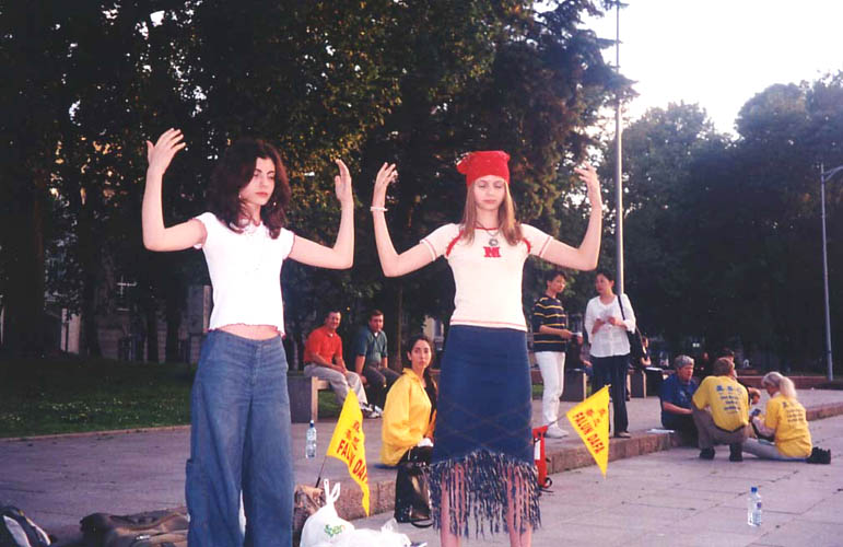 我们把“我支持法轮功“的胸章送给她们,孩子们高兴极了,拿着印有“法轮大法好”“真善忍”的小旗和我们留影,想到就要分别了,孩子们依依不舍,盖碧雅(GABIYA)抱住我说:“我真不愿意你走,你什么时候再来呀?”我说,瑞典的、英国的修炼者也会来,他们离你们更近些。另一位功友说她明天还能多呆一天,孩子们听了开心地笑了。她们渴望大法的那颗心深深地感动着我。