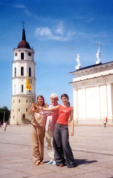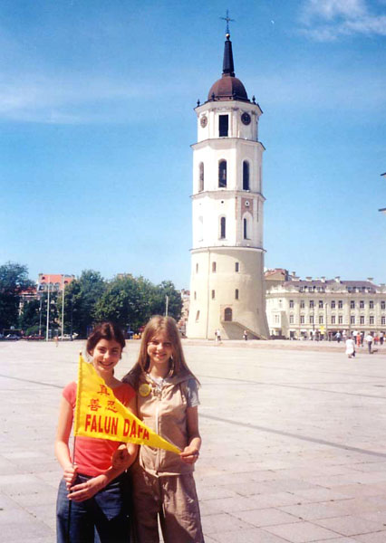 孩子们三步一回头地走了,我们坐下来休息,一会见她们又跑过来了,并说我们还想多跟你们呆一会儿,我跟她们讲自己是如何用“真善忍”指导自己的学生,告诉她们一个真善忍的好孩子应该是什么状态的,告诉她们我们到这里就是想把最宝贵的东西带给立陶宛人民。两个孩子睁着纯真的大眼睛静静地听着,我相信“真、善、忍”已渗入了她们的心灵,我在心底深深地祝福着她们,希望她们能够有个美好的未来。