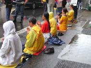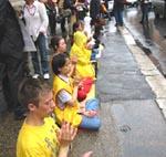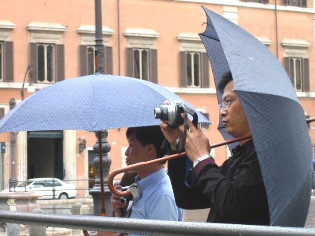 5月24日下午,当意大利内阁副总理非尼(FINI)在总理府CHIGI宫会见李岚清时,大法弟子们在阴雨中,在外面炼功,发正念,并打出“撤销610办公室,法办首恶李岚清”,“真善忍”“法轮大法”“法轮大法好”的横幅。学员在雨中不断地发正念,祥和的炼功场面引起许多路人和执勤警察的关注。因为害怕看到大法弟子,李岚清及其随行人员从侧门进入CHIGI宫,会谈结束后又从侧门,顺逆行车道迅速离开。记者和人权人士调侃地说,世界上最恶的独裁者只配从侧门出入。另外,因为他们在自己的国家肆意违法、使用极权已成为习惯,到意大利还要违反意大利的交通法规。