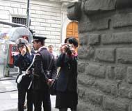 5月25日,大家来到了佛罗伦萨市,据说,李岚清一行要来此地访问,但消息非常不确切。大家还是按照这样的安排准备了,我们相信只要我们的心到位了,师父一定会安排的。根据申请的许可,上午,大家在佛罗伦萨著名的SIGNORIA广场炼功洪法,炼功地点正好在佛罗伦萨市政府VECCIHO宫的前面。因为是世界著名的旅游圣地、艺术之都,游人非常多。大家派发了大量的传单,可惜其他文种的资料没有备好,失去了向更多外国旅游者洪法的机会,但值得安慰的是,他们毕竟看到了学员们的炼功场面和巨大的“真善忍”横幅。