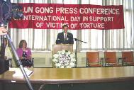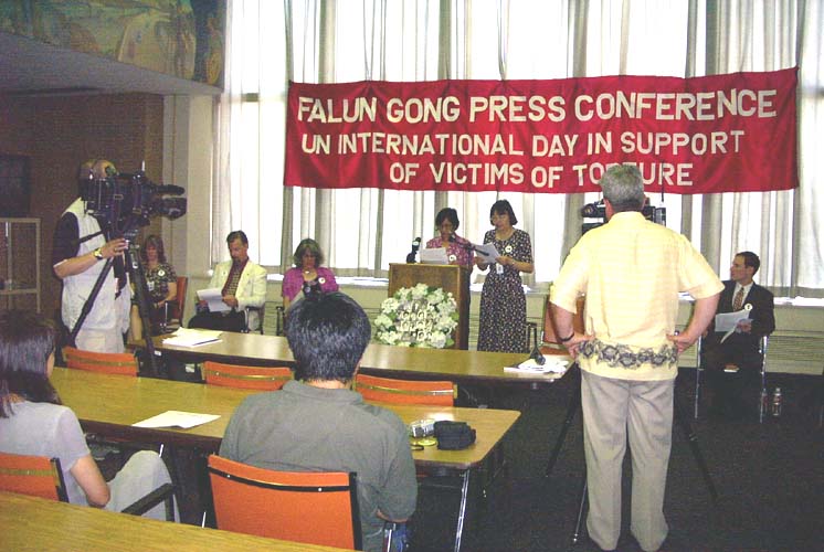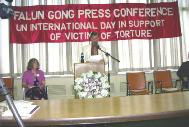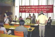 一位来自中国大陆曾被迫害过的法轮功学员讲述了她的遭遇:她是一位老教师,在工作岗位上做出过突出贡献,修炼大法后,不但身体受益,思想境界也在升华。由于她坚修大法,被非法劳教一年半,遭到了无理野蛮迫害。在会上发言的还有两名西方学员,他们分别介绍了他们今年初去天安门和平请愿被抓的经过。堪城大法弟子还介绍了堪城在中国的姐妹城市西安的大法弟子受迫害的情况。