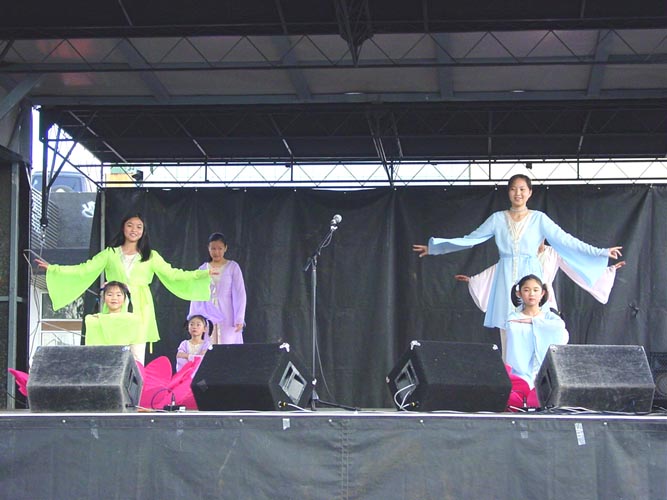 游行结束后,下午明慧小学的小弟子们还在舞台上表演了文艺节目,并为大家作了五套功法示范表演,博得了大家热烈的掌声。一位西人女士看着台上小弟子们的功法表演,一个劲地鼓掌,连声赞美,“太可爱了,太美了,我也要学炼法轮功。”