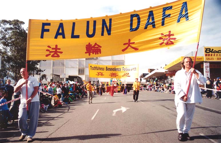 当游行队伍经过市中心舞台时,台上坐着的市长、联邦议员、省议员及市政府所有议员、官员们,都含笑向大法队伍招手,市长、市议员艾伦先生(Mr. Alan Pendleton)亦不停地向大法弟子点头示意。高音喇叭向市民们播音道:“法轮大法倡导‘真善忍’宇宙最高特性。法轮大法不讲政治、不是宗教,有益于人的身体和精神健康,在世界许多国家洪传,义务教功。”其实,了解情况的该市大法弟子都知道,台上坐着的市长、议员们,次日(6月2日)就要启程出访海外,包括中国大陆在内的一些国家,该市正在和中方洽谈互结姊妹城市事宜,因该市在对待法轮功问题上,一直受到中国驻澳总领馆方面的压力。但市长、议员们表态说,法轮功学员也是我们市社区的一员,澳洲是自由民主的国家,我们有权对此作出自己的决定。是啊,世界需要“真善忍”,人民需要“真善忍”。对大法的一念,给该市人民摆放了未来美好的位置,这正是值得我们为之喜庆的啊!