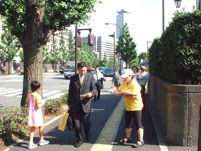 广岛一位居民得知情况后,主动帮助学员一起征集签名,东京的一位女士第一天接了学员的介绍材料阅读后,第二天特意赶到学员分发材料的地方来签名,她说,这样残忍的迫害让人难以想象,我一定要签名支持你们。还有的善良百姓,看到学员在烈日酷暑中坚持不懈征集签名,一定要买来雪糕、饮料送给学员。