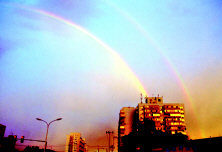 北京晚报消息──7月13日凌晨4时左右,北京市天空出现了一道美丽的彩虹,据北京气象台的专家介绍,这种现象与本市近期持续闷热的天气没有直接的关系。据分析,本市目前的闷热天气还将持续3天到一周。