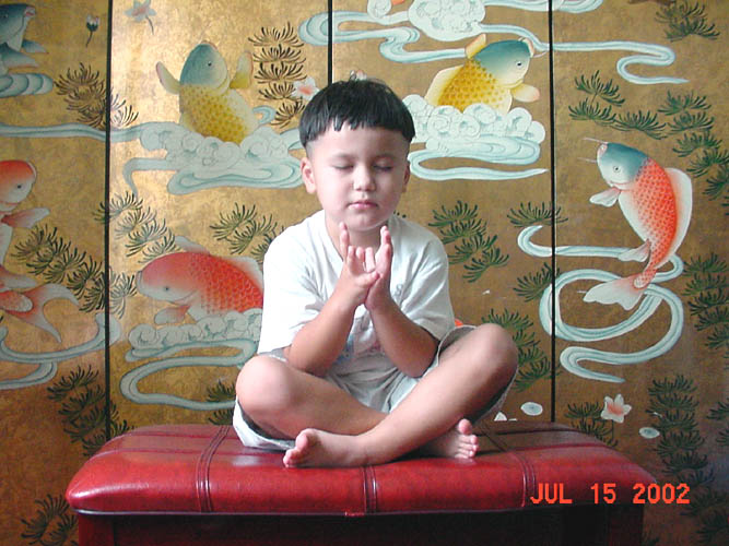 童心纯真:小弟子炼功发正念(图)
