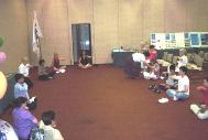 庆典仪式的会场布置得庄严而祥和。主席台正前方悬挂着“法轮大法”和“真善忍”的横幅。横幅下方的桌子上摆满了曼茂斯县各级政府官员为这次庆典活动所发布的褒奖状和嘉奖令等。会场的四周摆放着介绍法轮大法的图片展板。