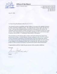 由于我们十分关注法轮功学员在中国遭受的人权迫害和残酷虐待,我和迈迪森市议会的同事们于今年四月通过了一项决议,褒奖法轮功,谴责中国政府对法轮功学员的迫害。我们将继续关注在中国的状况,我们希望中国人民拥有信仰自由的那一日早日到来。