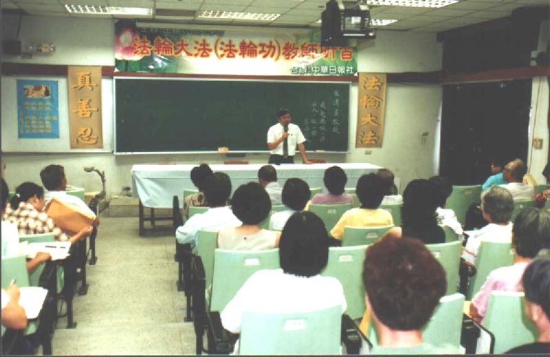此次研习营参加者非常踊跃,座无虚席,除了教师外尚有眷属和小朋友甚至年长的先生和太太也不少,可见法轮功已深入各个阶层,大家都知道法轮大法好,扶老携幼的来参加了。