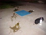 到十点十分后,他们睁开眼看到满地是投掷来的生鸡蛋,破碎的鸡蛋看上去有一打,他们立即向当地警察和FBI(美国联邦调查局)报警,在电话中FBI详细记录了事情发生的经过,当地警察亲自到中领馆前观看现场,学员们详细叙述了事情经过,并向警察介绍了他们来中领馆前和平请愿的原因和江泽民当局残酷迫害法轮功学员的情况,学员还给了警察法轮功真相资料,警察了解并记录了事情发生的经过。闻讯赶来的一位学员拍摄了现场,并向警察讲述了他曾亲眼目睹的2000年10月22日发生在加州三藩市唐人街花园角的一起流氓殴打法轮功学员的事件,这些流氓是中领馆花钱雇来干坏事的。