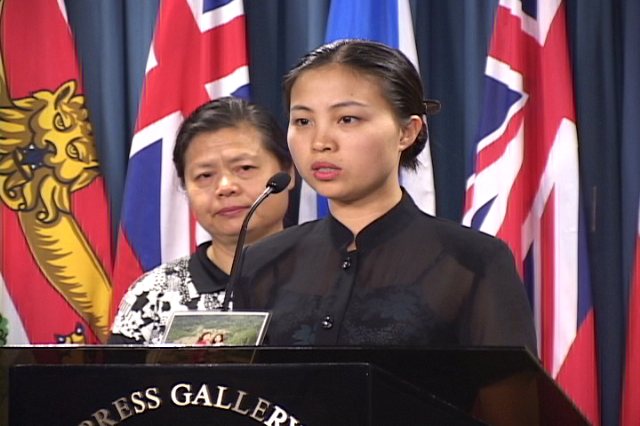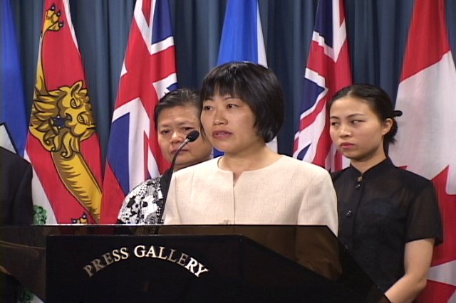 上午11点30分,在国会内,来自多伦多和蒙特利尔的四位法轮功学员举行了新闻发布会,在新闻发布会上他们讲述了自己在国内的亲人因修炼法轮功所遭受的迫害,并呼吁加拿大政府及善良人民的进一步支持和帮助。