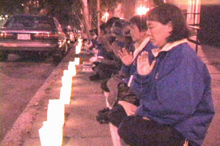 当晚7点半钟,学员们相继到位,排坐着整齐的队列,遵照师父教导,做任何事情都要先考虑别人。排坐每隔一段距离就空出人行道来,方便住宅人员行走。学员们个个以既严肃又祥和的心态,参加了这次活动,秩序井然。展示出大法弟子的风范。烛光守夜持续到晚上10点钟结束,学员们分成几组静悄悄地离去.