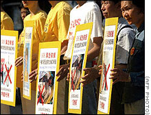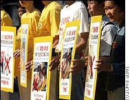 香港法轮功发言人简鸿章说,“在过去的三年中,(中国主席)江泽民集团动用国家宣传机器对我们进行诽谤和攻击,并使用军警和秘密警察对我们进行残酷迫害。”