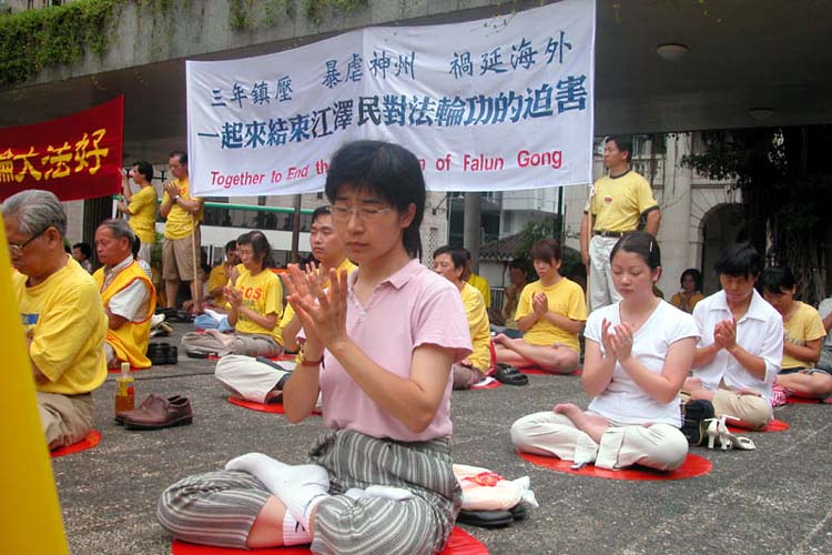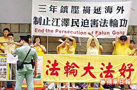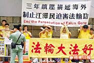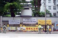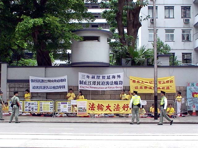 学员指出,三年以来,江泽民对法轮功的迫害,不但暴虐神州,还不断地伸延到香港、澳门以至其他海外国家,影响到这些国家和地区本身正常的运作,侵害了各地民众的人权和自由。香港近年加紧对法轮功的压制,也是愈来愈明显,包括长期拒绝租借场地,无理拒绝海外法轮功学员入境参加和平请愿活动,以至无理拘捕并诬告在中联办前门和平请愿的法轮功学员,都严重地损害了香港的法治人权和“一国两制”下的高度自治。