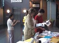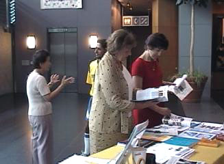 一位西人女士在拿到英文的真相资料后,还要求得到一份中文资料以送给她的一位香港同事看。一家祖孙三代在看到张贴的中文展览会布告后前来参观,在看完图片展后,又捧起学员们送给他们的真相资料“见证”、“自焚真相”仔细阅读。图片展一直伴随着悠扬的大法弟子自己所创造的音乐和歌曲。期间,学员们还定时进行了功法演示。