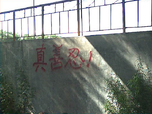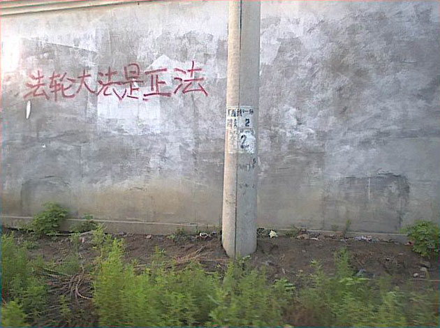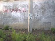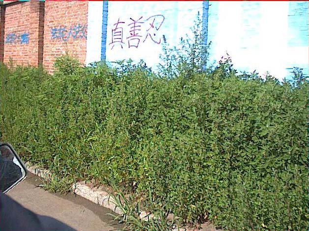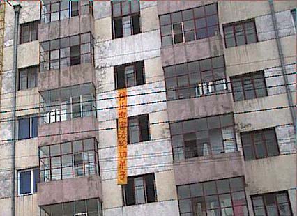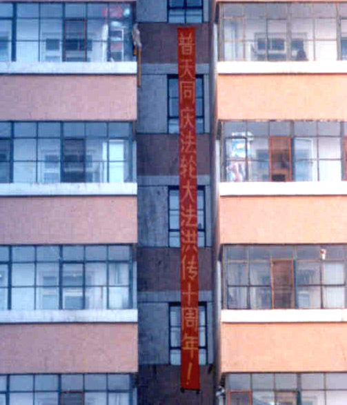 【明慧网2002年7月23日】东北某市的大法弟子于2002年7月16日,在市内主要繁华地带又挂了四条大条幅,17、18日还安放了真相喇叭。还有到处可见的喷字标语。市民议论纷纷,更加了解了法轮大法。