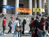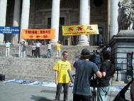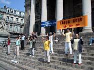 一位比利时人开始不理解我们为什么要这样做,他认为我们反对中国政府,他说他很喜欢中国。学员告诉他,我们更希望中国好,我们根本就不反对中国政府,我们反对的是这场邪恶的镇压。师父明确告诉我们,”不参与政治”,“别人可以对我们不好,我们不能对别人不好,我们不能把人当成敌人。”但是这种对信仰真善忍的人民的迫害和人权践踏是错误的,应该制止。任何有正义的人和政府都会谴责这种迫害。而且,这场邪恶的镇压是江泽民等几个坏人利用国家政府和权力一手制造的,中国政府中的很多人是反对对法轮功的迫害的。最后他表示坚决反对对信仰的迫害,也理解了我们的做法,希望以后更多的了解。