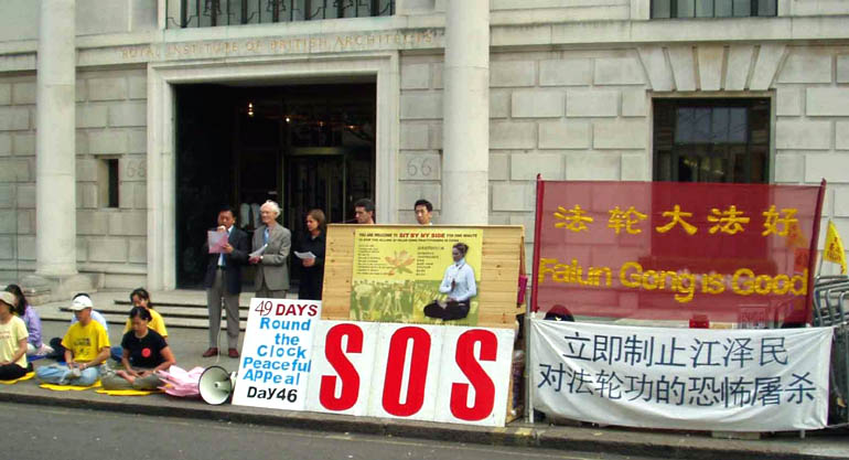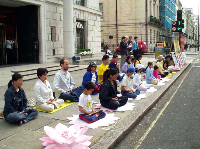在伦敦,学员们来到中国驻英国大使馆前发正念。学员宣读了要求立即停止迫害法轮功、释放法轮功学员的声明。欧洲法轮功之友副主席约翰先生发表了演讲。学员还代为宣读了国会议员戈兰达女士及大伦敦议会议员科尔曼先生的声明。他们在声明中谴责了中国(江氏集团)对法轮功学员的迫害。之后,学员朱宝生讲述了他妹妹仅仅因为有自己的信仰──修炼法轮大法,而遭江氏集团残酷迫害,至今被关押在劳教所的遭遇。