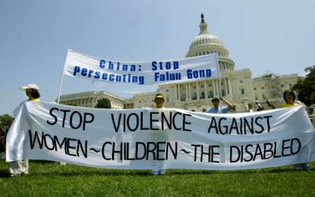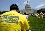 路透社图片报导:法轮功学员在国会山前抗议在中国的镇压