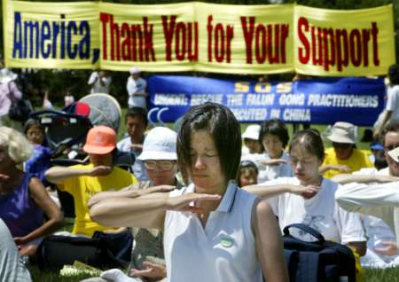 法新社:被禁三年后法轮功(学员)在华盛顿坚持抗议