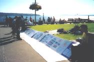 7.20那天的游行结束后,学员又到市中心依山傍水的湃克公园展出正法之路图片系列。这个公园是西雅图的一个旅游景点,远处可见百里之外的大雪山耸入云霄,近处点点白帆点缀着蓝色的海湾。白雪、绿松、蓝水,尽在眼底。
