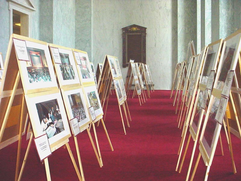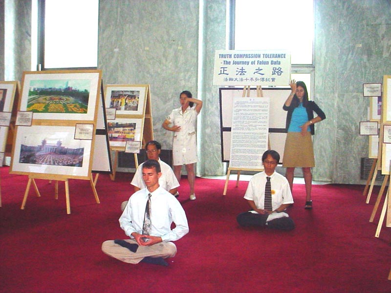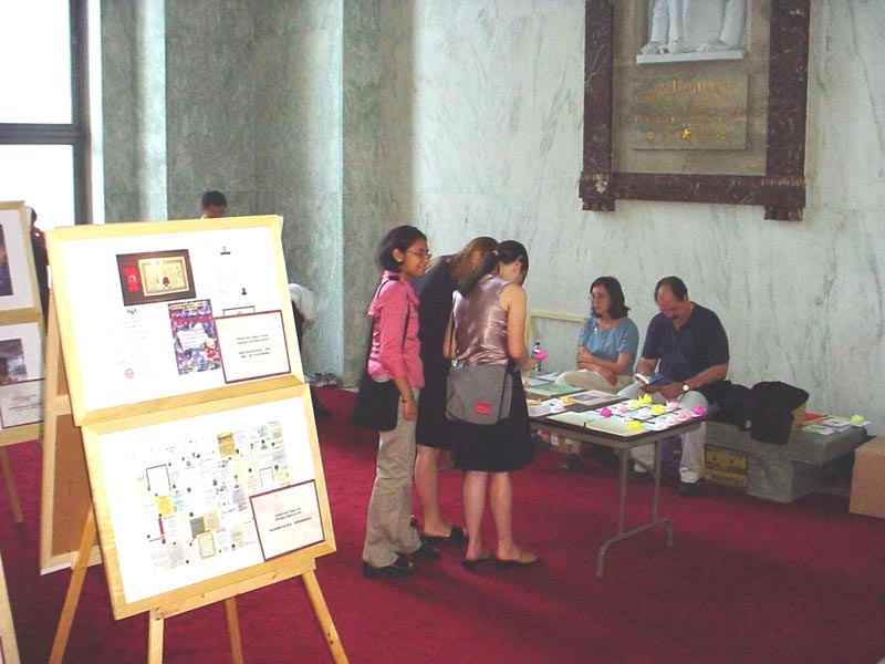 在富丽堂皇的Rayburn大厦大厅里,一百三十多幅栩栩如生的图片向美国国会的官员及工作人员展示了大法十年弘传,世界各国法轮大法学员修心向善,以及面对强暴不屈不挠的正法历程。