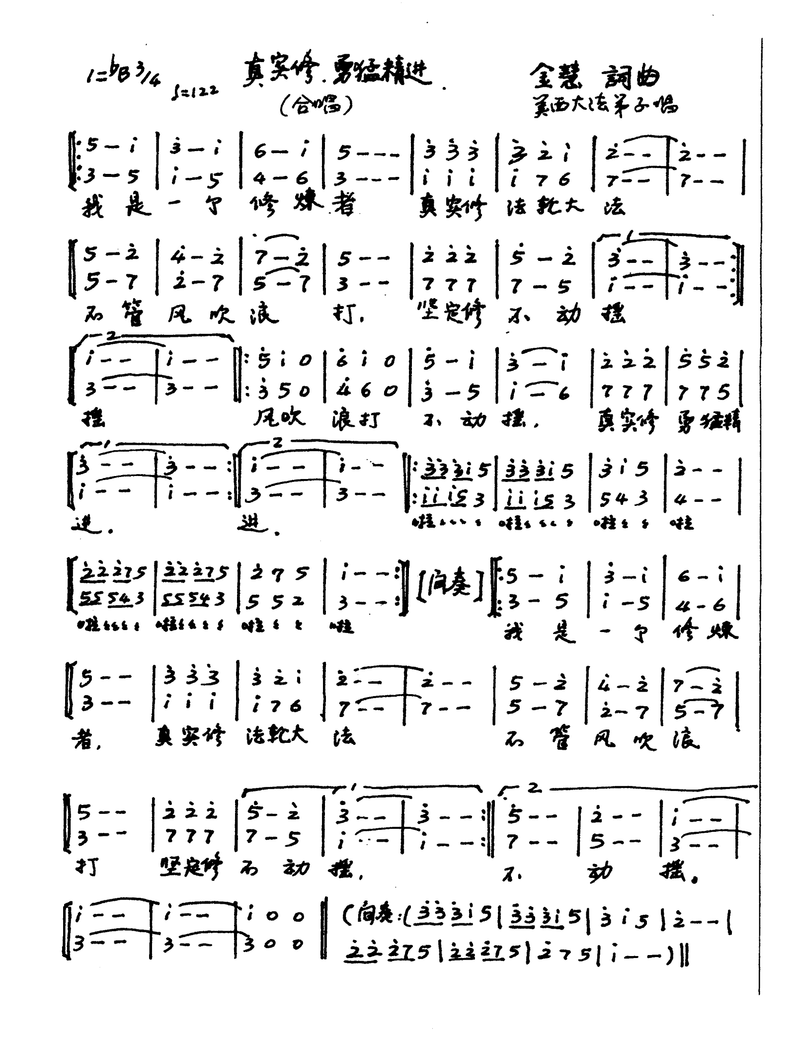 | 我是一个修炼者 真实修法轮大法 不管风吹浪打 坚定修 不动摇 风吹浪打不动摇 真实修勇猛精进 |