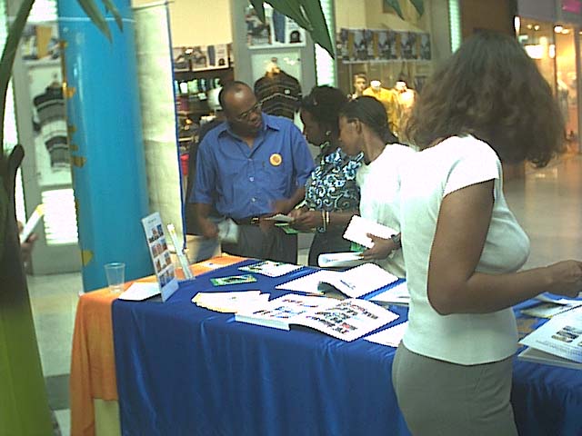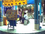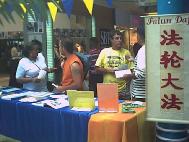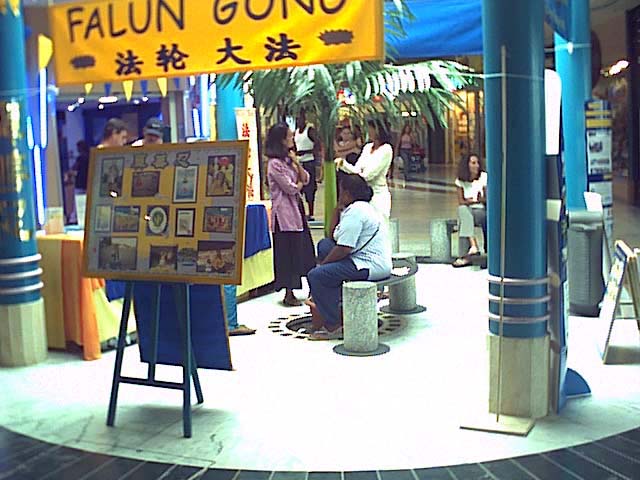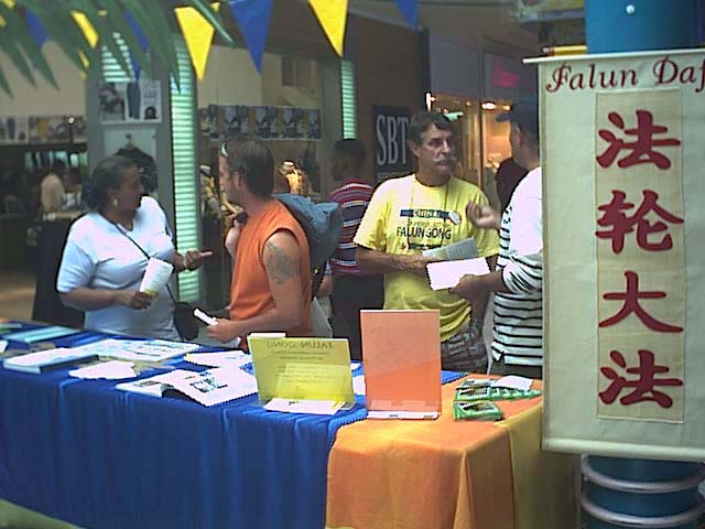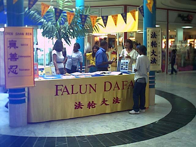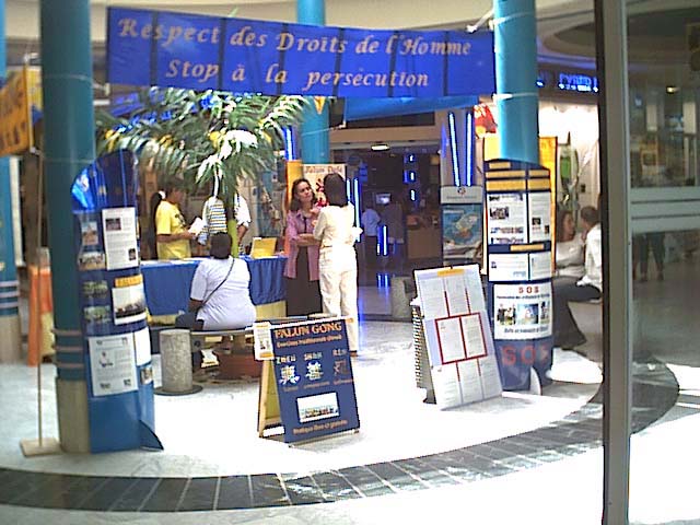 三周年之际,法国海外省瓜德路普的法轮功学员举行活动揭露中国当局的暴行。2002年7月20日全天,学员们在当地的一家大商业中心