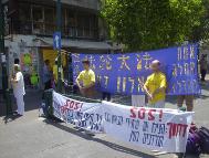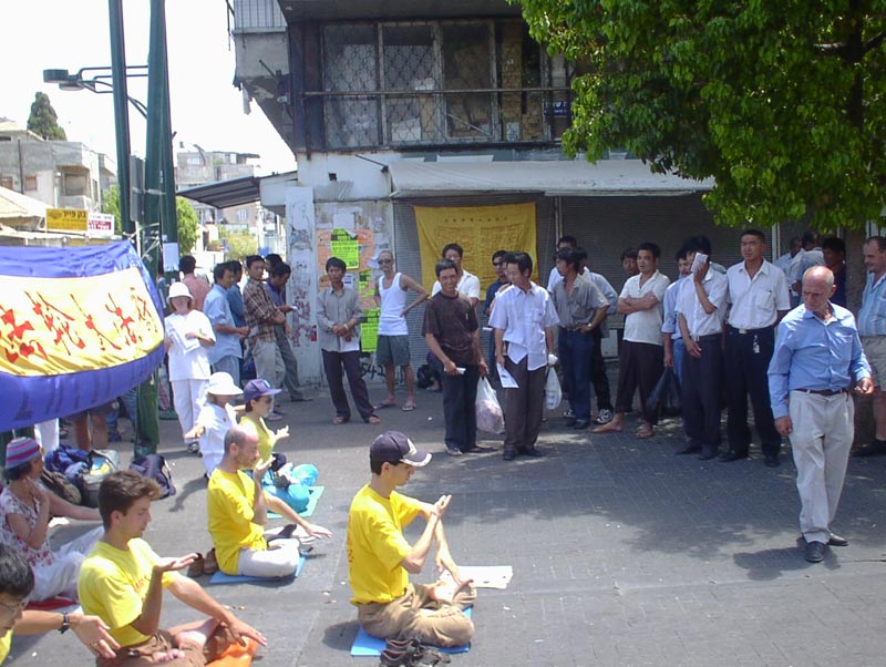 2002年7月20日,法轮功在中国被江泽民集团残酷迫害三周年,以色列特拉维夫法轮功学员走上街头发传单讲真相。学员们步行到海滨,炼功讲真相。最后,学员们来到特拉维夫中领馆前,举行烛光守夜。