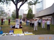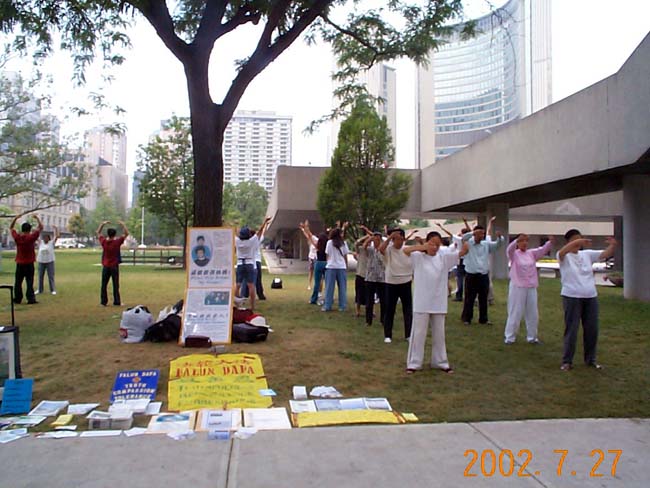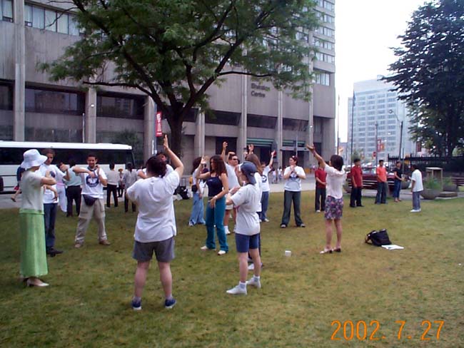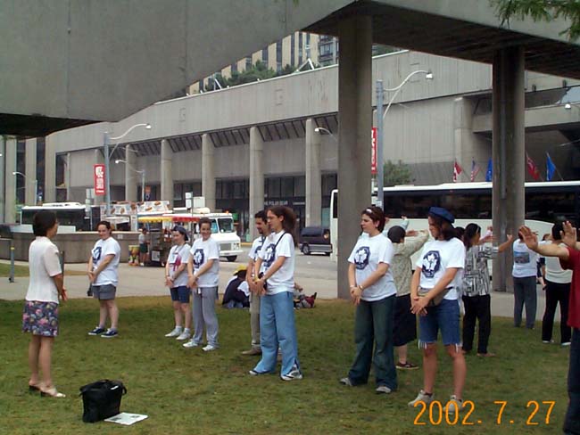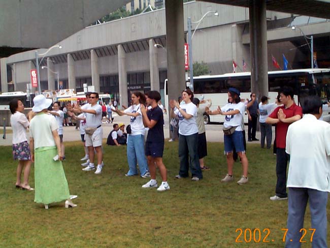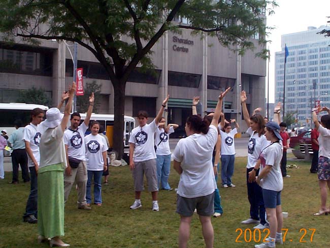 【明慧网2002年7月29日】夏日的多伦多气候宜人,迎来了众多的游客,特别是2002年7月23日以来,天主教的世界青年节在多伦多举行,来自全球各地的近28万各族青年会聚多伦多,街头巷尾人头攒动、热闹非凡。