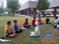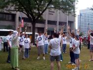 多伦多的学员抓住这个大好时机,向各国青年洪法,印制了多种文字的小传单,将法轮大法提倡真、善、忍,以及紧急呼吁各国政府和人民,帮助停止江泽民政权对法轮功的的信息传递给各国人民。