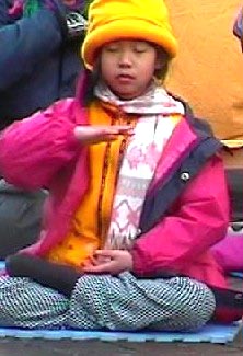 值得一提的是,在我们的弘法小分队中有一位小弟子,三天来一直跟着爸爸妈妈去弘法、发正念、炼功、发传单,而且一直坚持到最后,没有怨言。