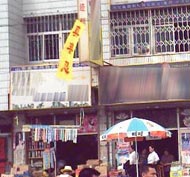 在7.20三周年之际,辽宁省某市大法弟子于7月23日晚8点多钟,在最繁华的三条商业街上,把14条长1.6米,宽0.5米的黄底红字条幅悬挂在离地8米左右的高处,上面写着醒目的“法轮大法好”、“真、善、忍”。条幅有力地震慑了邪恶,警醒了世人。过往行人无不抬头观看,有的还读出声来。条幅至今还在街头迎风飘扬,成了这座城市的一道亮丽的风景线。