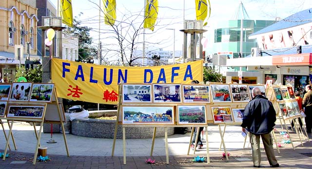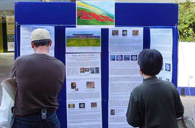 一位中国大陆来澳探亲的华人,看了图片展,当即表示想看李洪志师父的“九讲班”录像。他表示准备将“九讲班”录像带回中国大陆,让自己的亲友们也能有机会了解大法……一拨一拨的看过图片展的人们,都为法轮大法的祥和、纯正所感染,也为法轮大法弟子坚持真理的浩然正气所震撼。