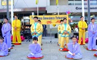当日上午11时至下午4时,大法弟子全天候的自编、自导、自演的精彩文艺表演及明慧学校小弟子们优美舒缓的五套功法演示,向人们展示了法轮大法的美好和殊胜,博得了人们阵阵热烈掌声。