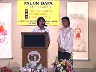 在开幕式上章女士讲述了她回中国的遭遇,为法轮功说句公道话而被关押八个月,受尽折磨。如果不是澳洲政府和各界人士的营救,可能冤死狱中。