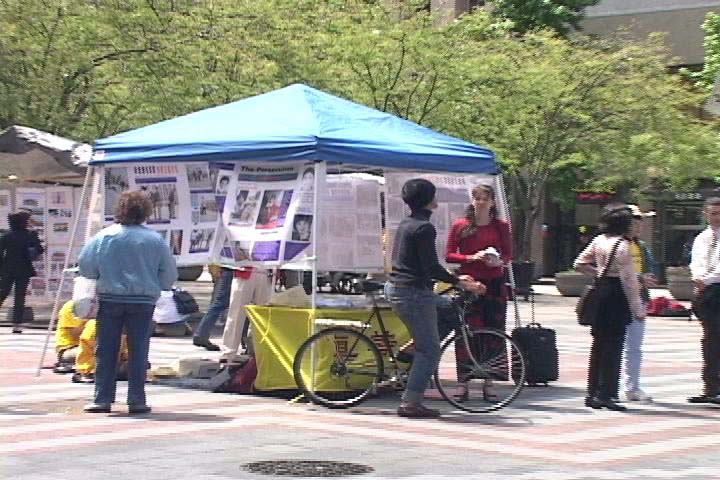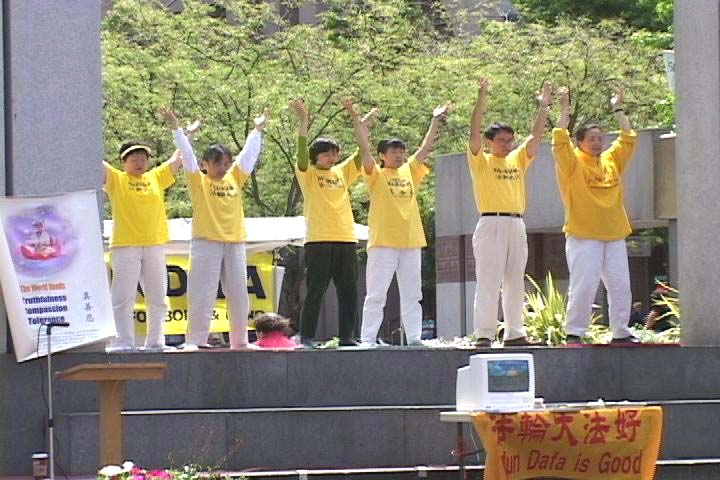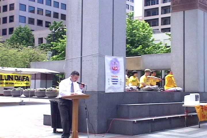 【明慧网2002年7月5日】为支持联合国一年一度举办的6月26日国际反日,西雅图学员于周末6月29-30日在西雅图市中心Westlake公园举行了两日的活动。新闻发布会上,学员们向当地居民介绍了法轮功及其在中国被的情况。一名西人学员谈了她今年2月去北京请愿被关押5天的经历。路人驻足聆听在中国发生的残暴镇压。学员们呼吁民众支持联合国国际反酷刑日,向被迫害的法轮功学员伸出援助之手。