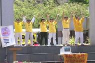 活动中学员们展示了正法之路图片展及法轮功在中国被残酷迫害的图片事实。此次重点展出的图片是被迫害的大陆学员所揭露于世的他们在监狱中所受的各种酷刑,包括、竹签扎指等。
