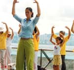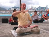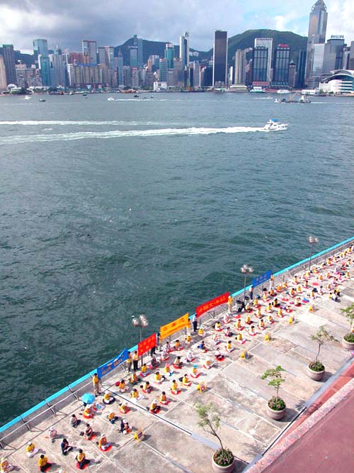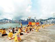各国学员香港海滨炼功 天空呈现巨形彩色光环(图)