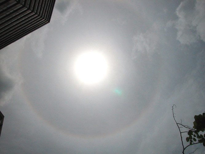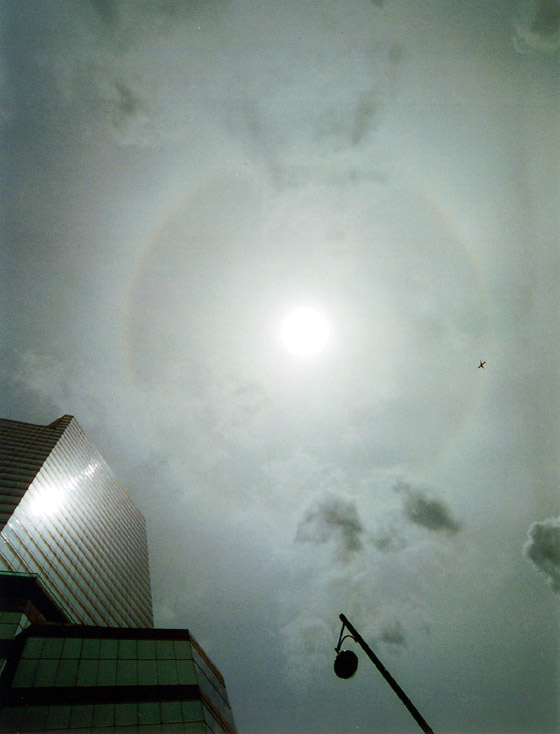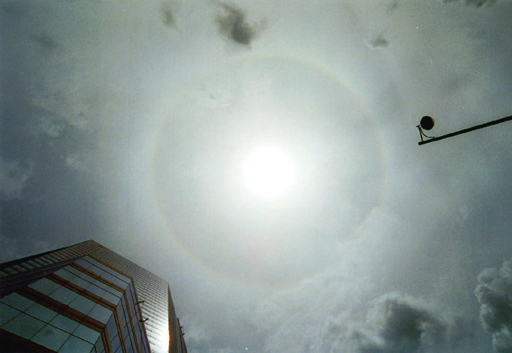 【明慧网2002年7月5日】参加香港正法活动的二百多名各地学员,7月2日上午在九龙海滨公园集体炼功时,天空突然呈现围绕太阳的巨型彩色光环,历久不散。当时在现场监视学员的警员,都纷纷仰头观看这清晰可见的天空奇景。(香港学员2002年7月2日报导)