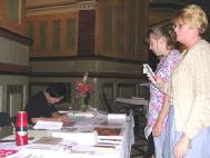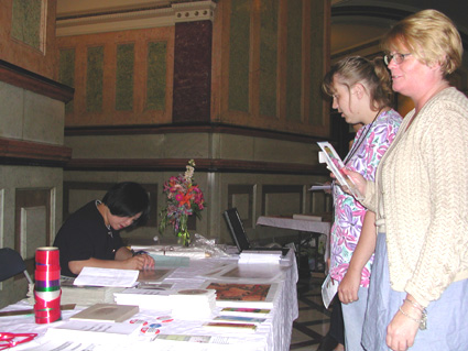 学员们向游人讲述着法轮功真相。不少游人听了真相后,表示要去浏览我们的网站。一位州政府办公人员听到法轮功能给人带来内心的平静时,说我正需要这个。她拿了所有的材料,说一定去看。章翠英赠了画给她,她说简直太美了。听了章翠英女士的经历和法轮功学员受迫害事实后,她感到震惊,她不理解中国的独裁者为什么要迫害好人。