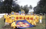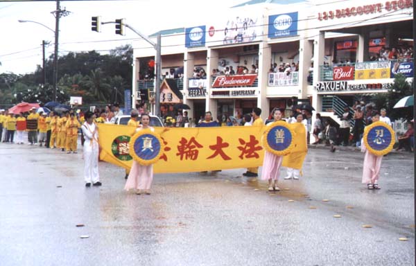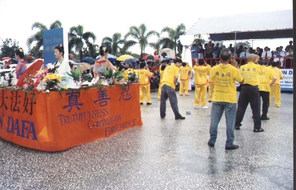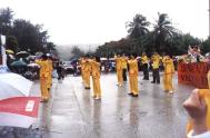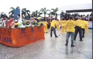 游行日虽然下着阵雨,学员全身都淋湿了,可大家都乐呵呵的。能让更多人认识大法、了解大法是每个大法弟子的共同心愿。