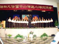 7月6日一个阳光明媚的日子,法轮大法旧金山湾区心得交流会在位于帕鲁阿图(Palo Alto)市的一个社区文化中心隆重召开。来自洛杉矶(LA),圣地亚哥(San Diego),拉斯维加斯(Las Vegas)等和湾区的大法弟子聚集一堂。围绕当前在正法进程中以学好法,讲清真相,发正念为主题进行了交流。大法弟子们叙述着迷失在尘世中的痛苦,得法后的喜悦;在邪恶疯狂迫害生死攸关时,弟子们是如何以法为师,用发正念清除毒害世人的一切邪恶因素等,讲着真相,救度着众生的。无论华人学员或西人学员都不约而同地表达了他们学好法,维护法的坚定信念。大会进行中。学员们不忘和全球大法弟子一起同发正念。大会在朗读师尊新经文“如来”声中闭幕。
