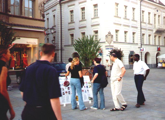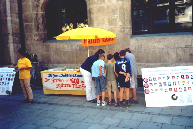 【明慧网2002年7月9日】6月26日这天,我们雷根斯堡(Regensburg)的法轮功学员也参加了“国际反酷刑日”活动,以唤起当地民众的支持,尽快制止中国近三年来对法轮功学员惨无人道的持续升级的迫害