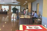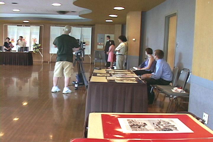 | 普渡大学观众参观章翠英画展 | 当地电视台拍摄新闻发布会现场 |