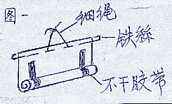 另外用牛皮纸或塑料膜或废名片剪成如图三所示舌脚,插入钩架的空隙处,按折弯线折弯,用不干胶粘牢即可。