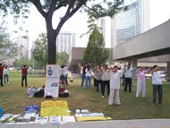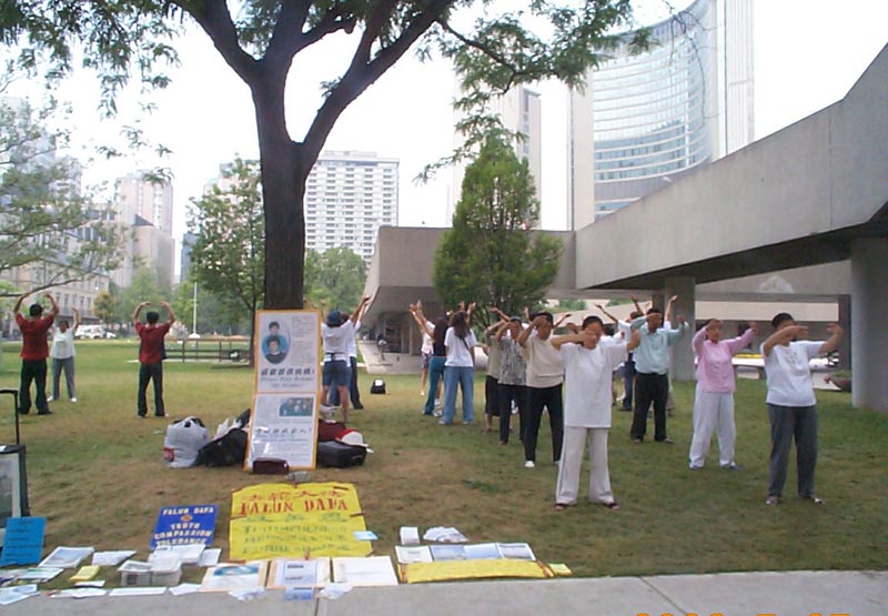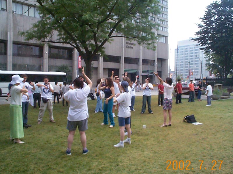 本届“世界青年节”期间,在多伦多的街头巷尾,在地铁站,在“皇后公园”,在“丹士佑”……两万份法轮大法的真象传单发完了,很快又加印了一万份; 征集签名的学员只要往人群中一站,周围的人排着长队等待着签名。一位年轻人在签过名后紧紧拥抱着学员, 久久不愿松手。他们中的一些人还以小礼物对大法学员的友善和为正义而作出的努力表示感谢。他们期盼的目光让人真切地感受到:来自四海的宾客,得闻大法,喜结圣缘才是此番不远万里朝拜的真正意义所在。