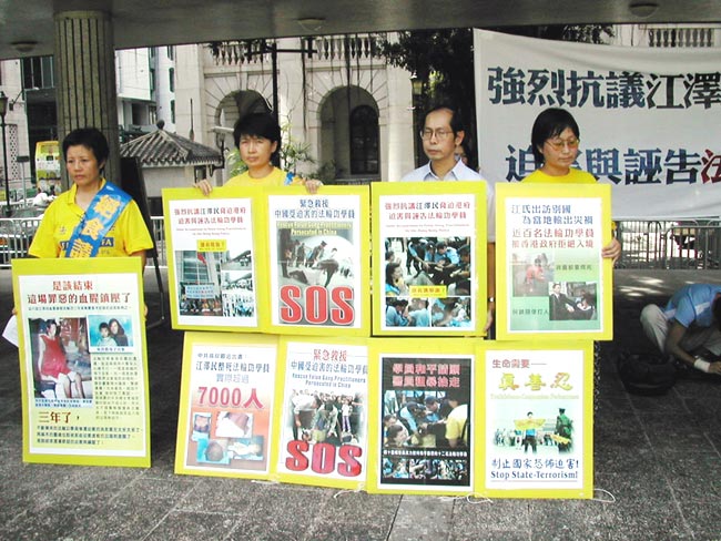在江泽民专政的压力下,特区政府明显出现进一步压制市民言论、集会、信仰等自由与权利的倾向,这表现在法轮功方面尤为明显。今年3月14日,4名瑞士学员与12名本地居住学员在中联办外和平请愿,呼吁制止江XX的开枪密令,在请愿开始4小时后即被警方暴力拘捕,其后并遭到诬告。此案将于8月15日宣判。