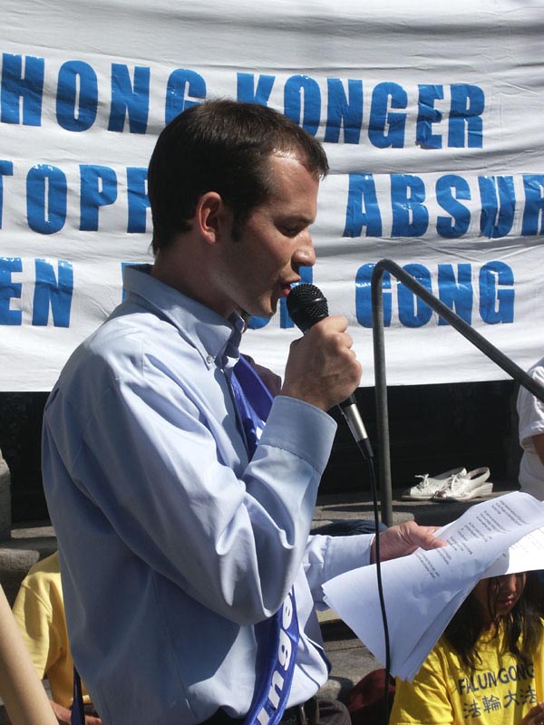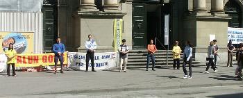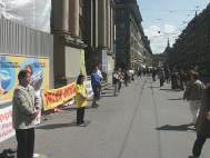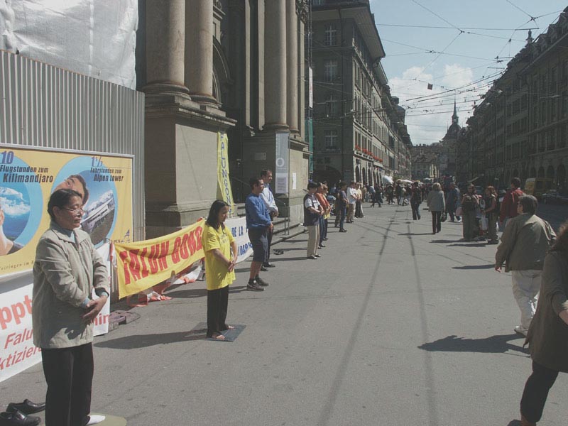 8月13日早,瑞士大法弟子在首都伯尔尼举行新闻发布会,揭露香港政治审判真相。为抗议江泽民集团把迫害法轮功延伸到香港及海外,声援在香港的大法弟子绝食请愿的正义行动,瑞士大法弟子于8月13日和14日,在首都伯尔尼同步举行绝食请愿。